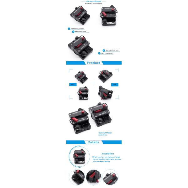 In the car audio or large car with electrical appliances circuit, the most convenient and safe is it! When the circuit is broken, there is no need to take time to remove it and install the fuse. Just press on or off.
